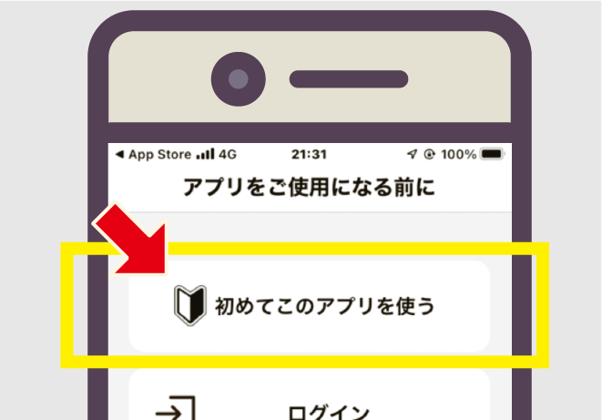 1.「初めてこのアプリを使う」をタッチ