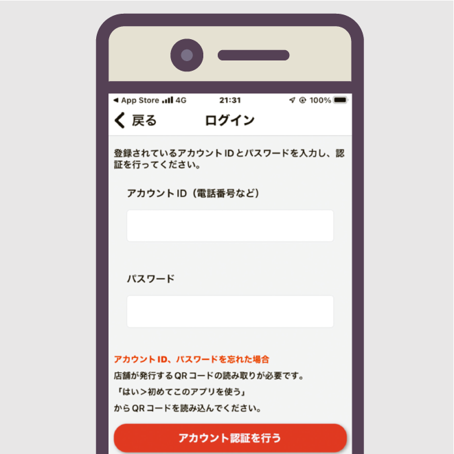 当店にご登録のお電話番号、パスワード(英数8~12文字)を入力する。