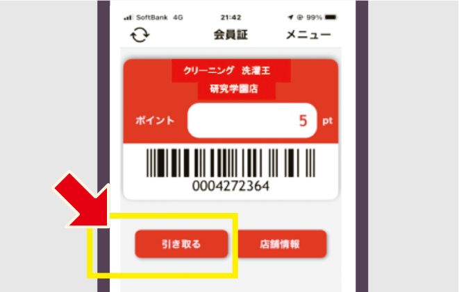 会員証から「引き取る」をタッチします。