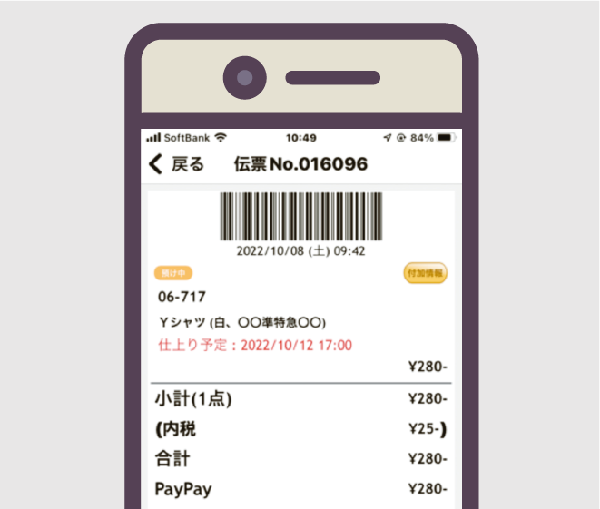 お引き取り用のバーコードを表示する。